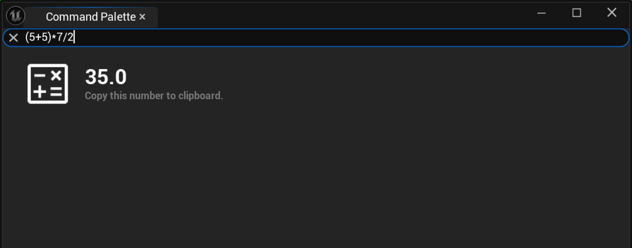 Type in a math expression and get the result instantly without leaving the Unreal Editor. No need to alt-tab to a calculator mid-session.