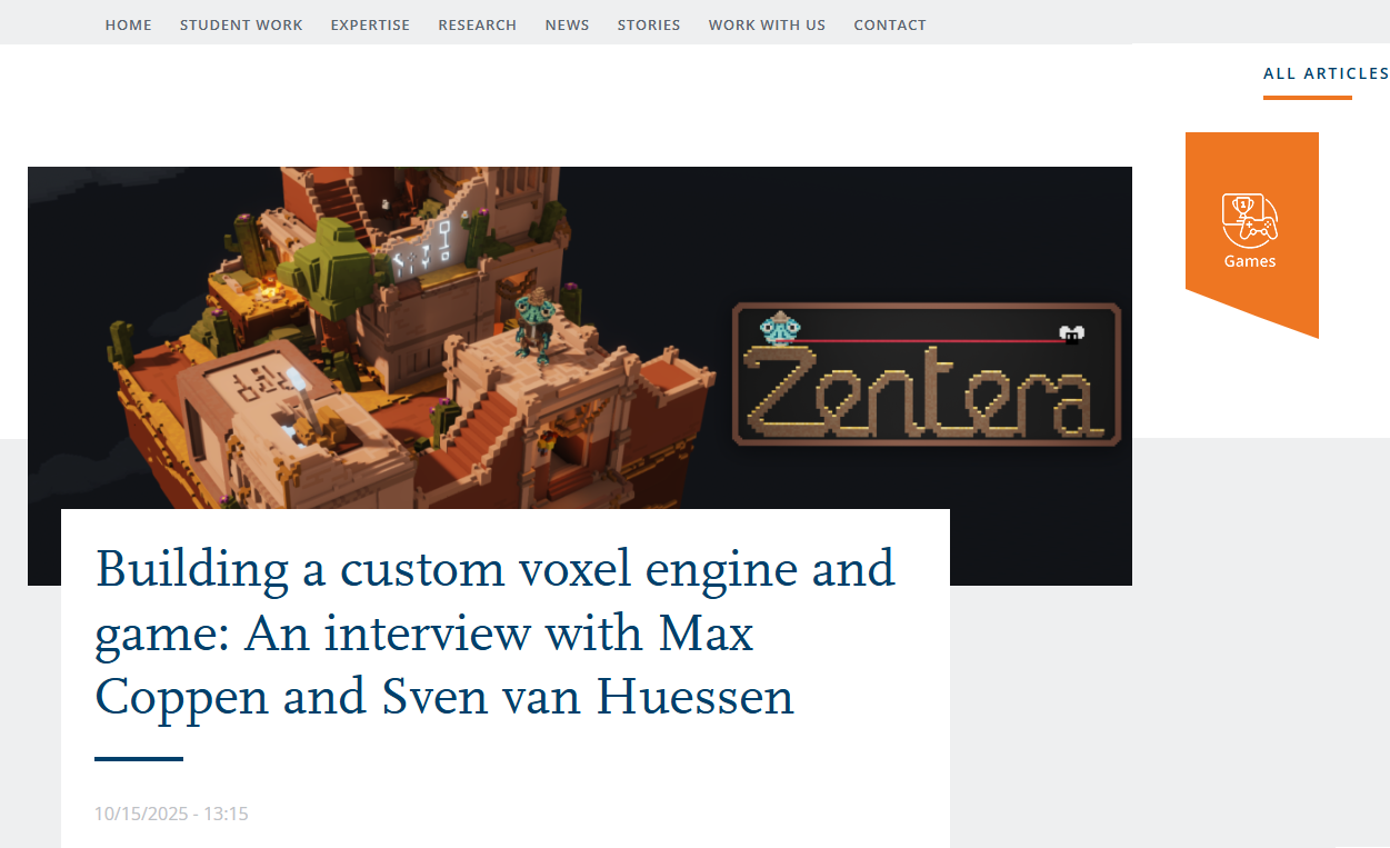 We made a game called Zentera. A 3D voxel-based puzzle platformer where you play as a lizard that uses his tongue to interact with the environment. The game was made for both PC and PS5.